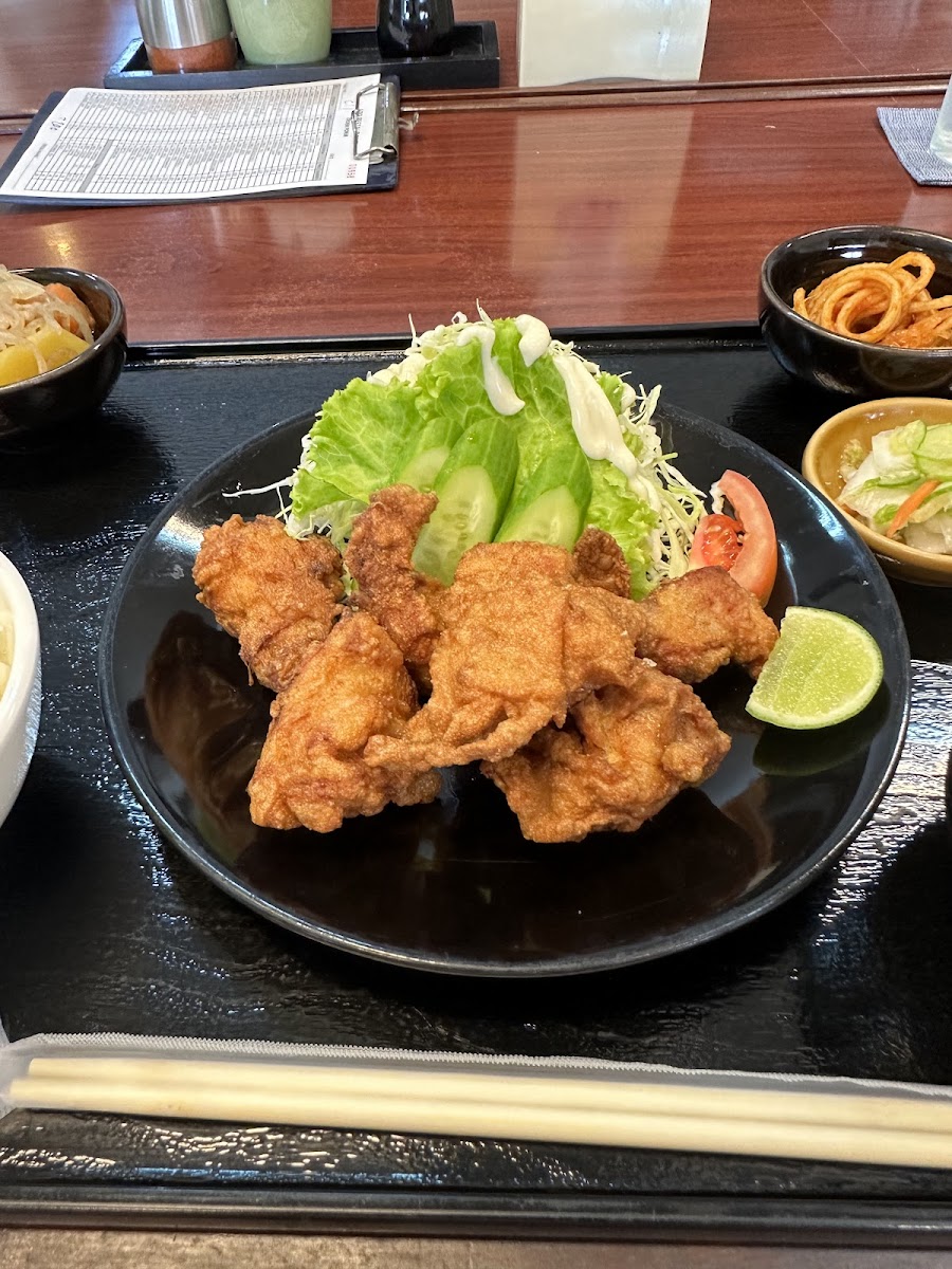 変わらず美味しくお昼ごはんを頂きました。 唐揚げ定食@200。